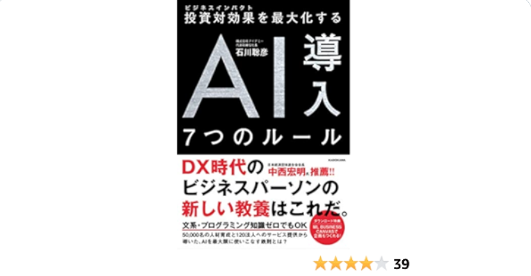 ひろき:〇〇さんの『東西 効果を最大化する AI 導入 7つのルール』という本を紹介します。機械学習は維持費用が安く複製可能ですが、初期費用が高く、汎用的な仕事には不向きです。データが多く、目的が明確な領域でこそ有効だと感じました。この本を読んで、目的がはっきりしていない場合、AIを使った分析に取り組むのはまだ早いと考えるようになりました。現時点では、チャットGPTとセッションを重ね、自分のデータを蓄積していくのが良いのではないかと思います。そうして貯めたデータが、いずれ自分のやりたいことに繋がると考えています。